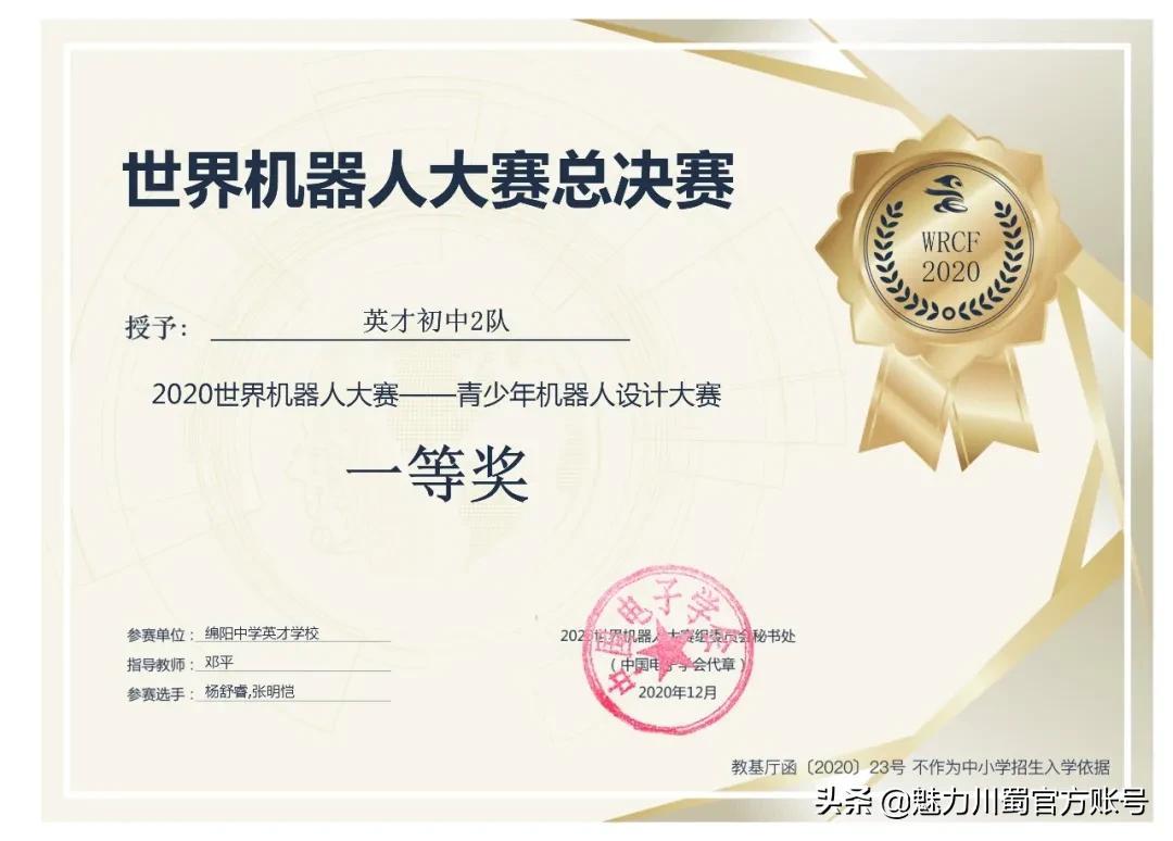 世界机器人大赛总决赛一等奖