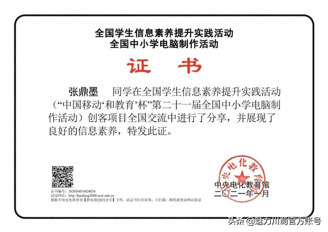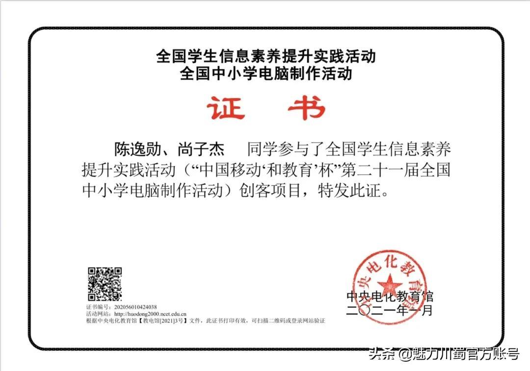 四川省中小学电脑制作活动一等奖