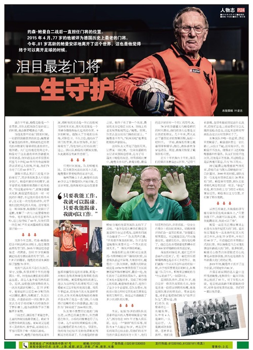记者叶凌志报道 约森·鲍曼自二战后一直担任门将。2015年4月,77岁的他被评为德国历史上最老的门将。在今年,81岁高龄的鲍曼安详的离开了这个世界,这也是他觉得终于可以离开足球的时候——事实上,就在半年前,鲍曼还像是一个老男孩,当队友把他放在替补席上的时候,他会撅着嘴表达不满。