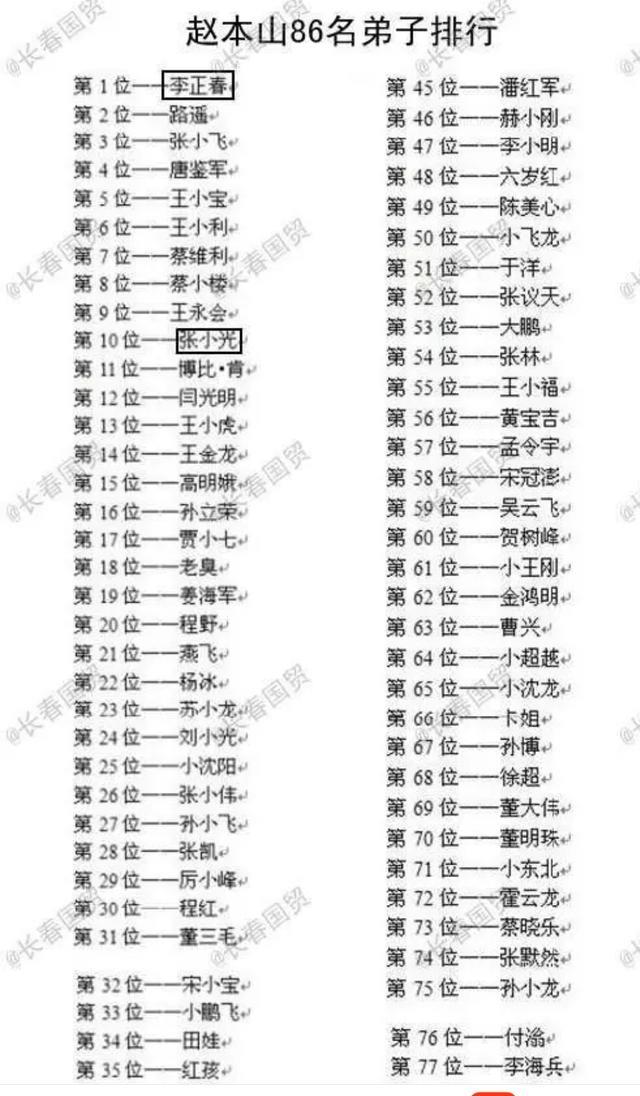 赵本山众多徒弟中比较可惜的是大徒弟李正春和10号徒弟张小光,两人都已经离开人世。其中李正春因为得病无法医治而去世,而张小光因为骑摩托闯高速而意外身亡。