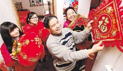 在大年三十的下午,把事先准备好的年画、对联、福字贴上,这叫“新桃换旧符”。