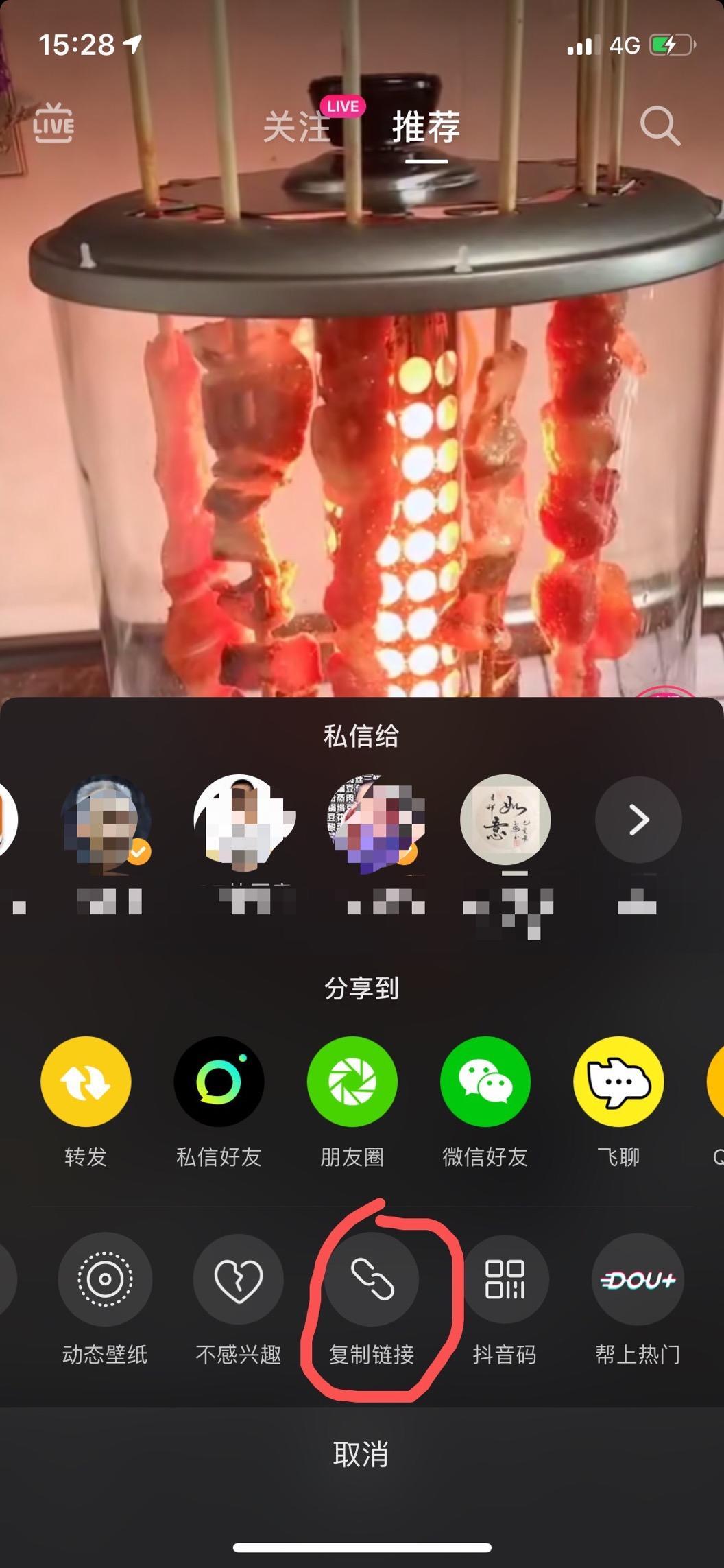 1、在短视频App打开要去水印的视频,点击“分享按钮”-“复制链接”