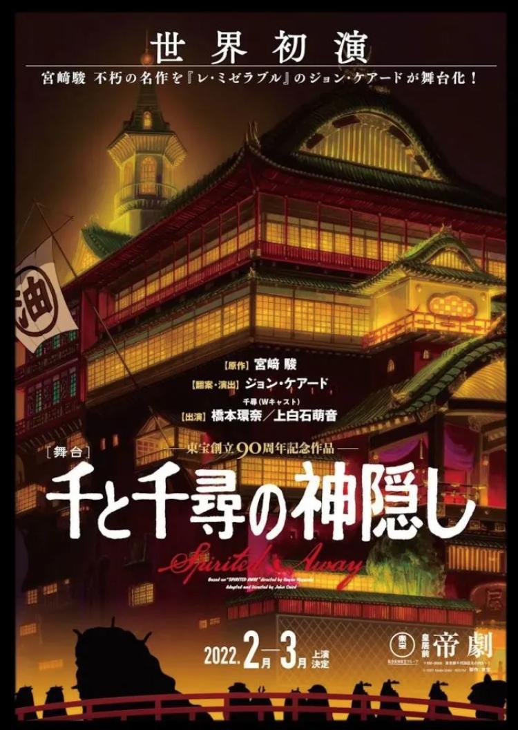 吉卜力工作室表示,舞台剧《千与千寻》将于2022年2月、3月在东京帝国剧场首演,之后4月在大阪、5月在福冈、6月在北海道、6月和7月在爱知名古屋上演,将来也会考虑海外版本。
