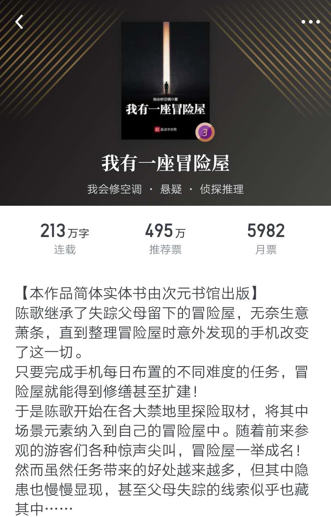 我会修空调于2018年6月在起点上传他的新书《我有一座恐怖屋》,于8月1日正式上架。作为本来就是大神的他,新书一上架就获得了1.7万首订的好成绩!