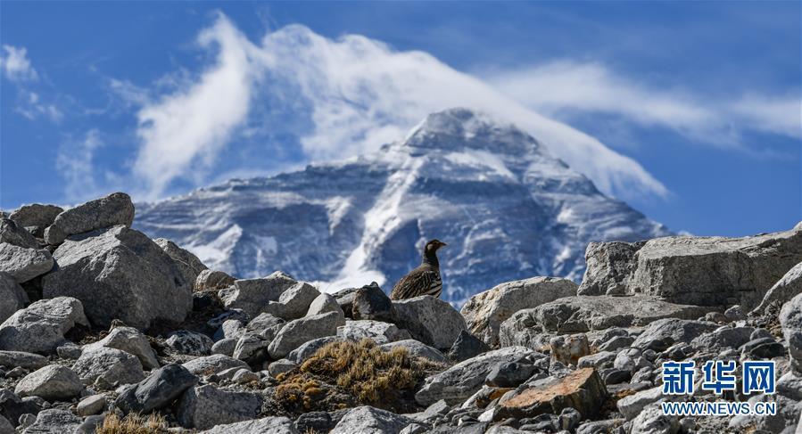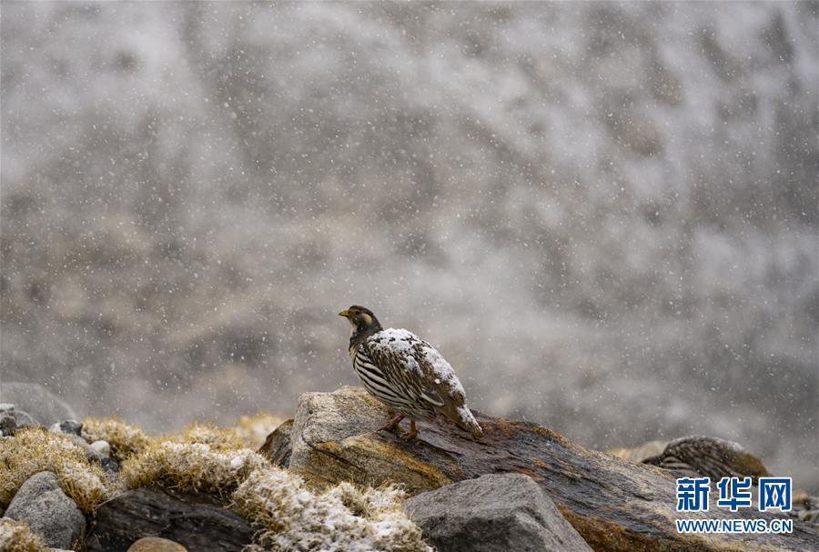 栖息在珠峰国家级自然保护区内的藏雪鸡(4月28日摄)。 珠穆朗玛峰山区高寒缺氧。然而,这里却栖息着一群雪域精灵。 新华社记者 晋美多吉 摄