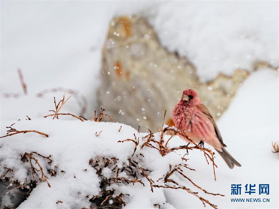 在珠峰国家级自然保护区内栖息的大朱雀(5月2日摄)。 珠穆朗玛峰山区高寒缺氧。然而,这里却栖息着一群雪域精灵。 新华社记者 普布扎西 摄