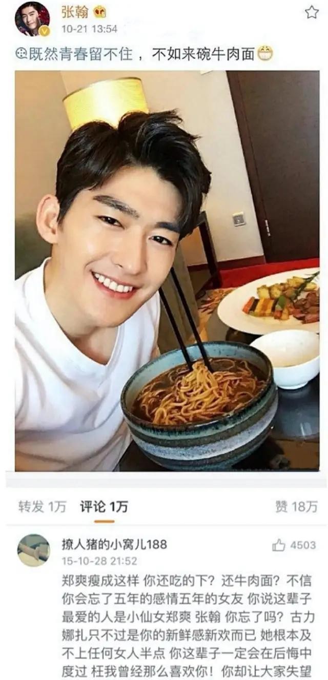 那时她的粉丝就开始护犊子,开撕张翰,连他吃碗牛肉面都难逃一骂。