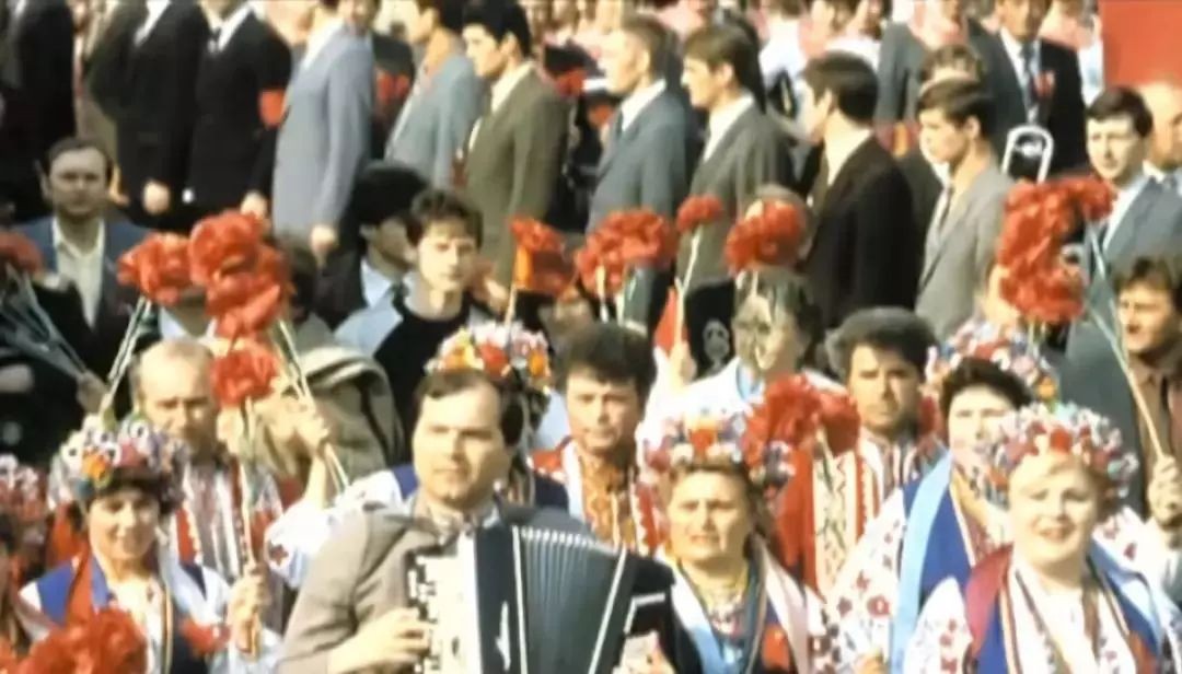 五一当天,基辅组织了全城游行活动。人们暴露在辐射中,看鸽群飞过,红旗飘扬,高呼“苏联万岁”,脸上洋溢着幸福的微笑。