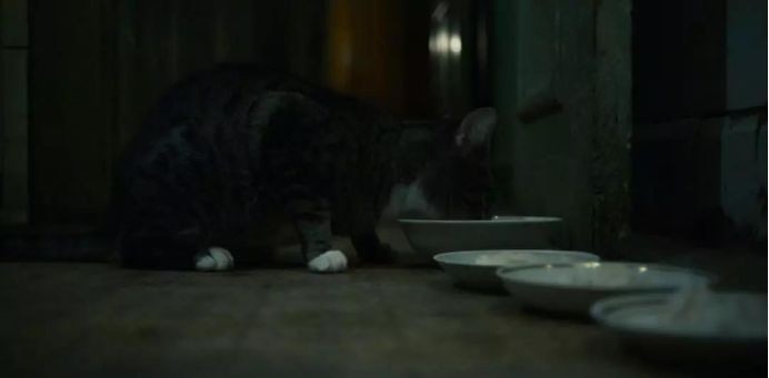 为猫咪准备好了四天的猫粮之后,他把录好的磁带拿报纸包起来,装作扔垃圾的样子把磁带藏起来。