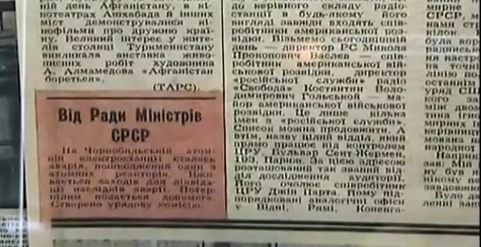 苏联当局意识到已遮掩不住,便在28日晚9点,通过苏联电视台插播了一则短讯,报道此事。但此时距离事故发生,已经过去了67个小时。