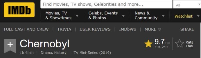 播出一个月后,《切尔诺贝利》成为IMDb史上评分最高的电视剧(高达9.7)。