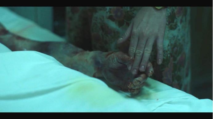 妻子眼睁睁看着丈夫的皮肤由蓝色变为红色再变为灰褐色,并开始破裂,她把自己的指甲剪到出血,也还是会划破丈夫那波如蝉翼的肌肤。