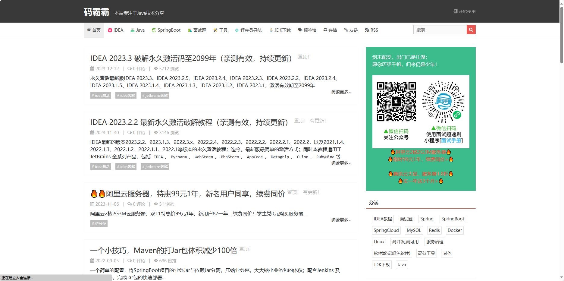 现在Idea破解教程一般都是在这里边找,里边内容还是比较多的,包括IDEA、Java、SpringBoot、面试题、工具、程序员导航等。
