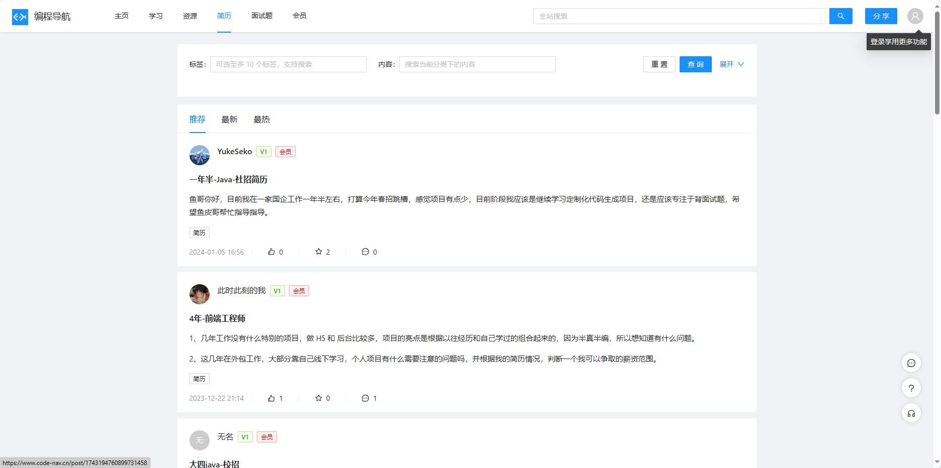 里边有JAVAEE、大数据、机器学习、web前端、数据库、Python、Andirod等学习内容,感觉很杂,学习内容很混乱,可下载视频学习,一直在收藏夹吃灰[笑哭]。最下方有论坛互动模块,包括会员签到、互动问答、程序员吐槽、经验心的总结模块。