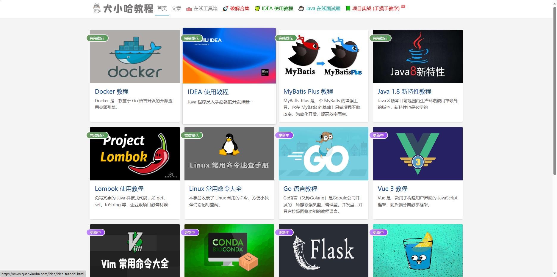 犬小哈教程,最早知道还是在公众号的时候,用幽默的动画来介绍一些知识点,后来发现了这个网站,里边内容还是比较用心的,可以在里边进行顺序性的学习,还是帮助很大的。