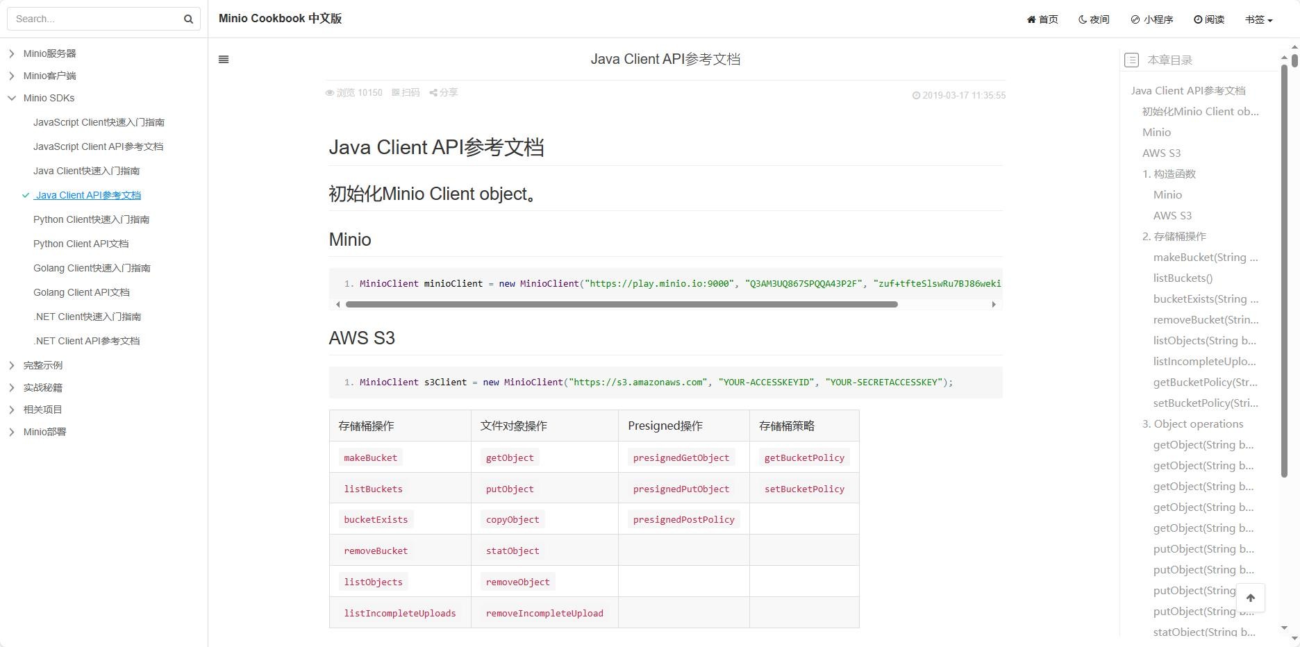 Minio SDKs - Java Client API参考文档 - 《Minio Cookbook 中文版》 - 书栈网 · BookStack[左上]