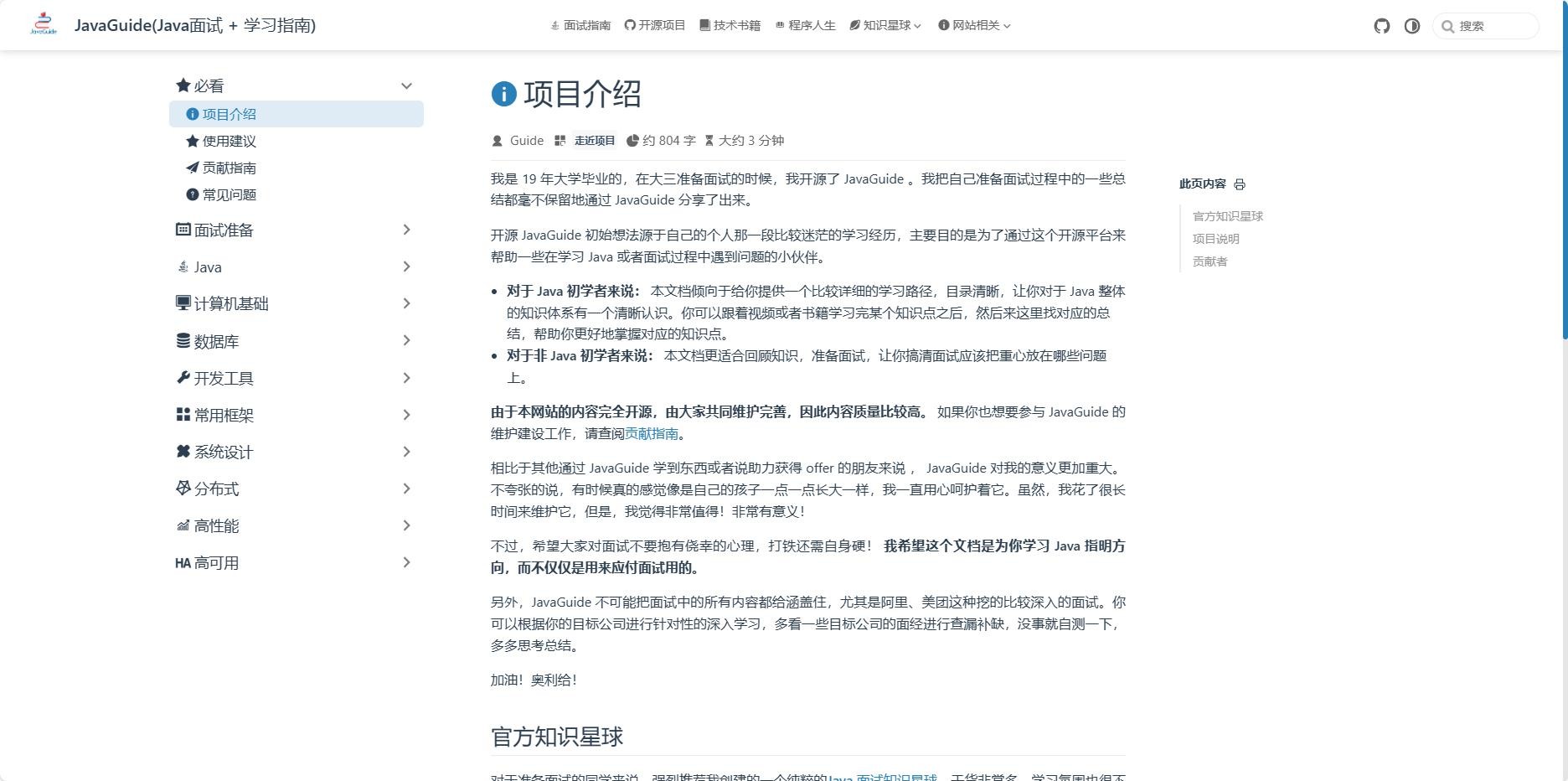 (项目介绍 | JavaGuide(Java面试 + 学习指南))[左上]