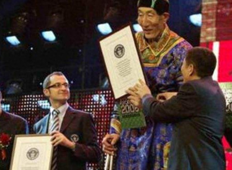 这个中国人叫鲍喜顺,是内蒙古人,2005年7月21日,吉尼斯世界纪录总部认证他是“世界自然生长第一高人”。