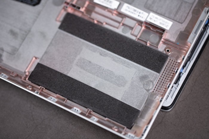 对应位置的背壳上2.5寸硬盘的缓震也有预留。