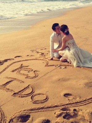 在婚礼前夕,向来低调的陈赫也曝出普吉岛浪漫婚纱照。