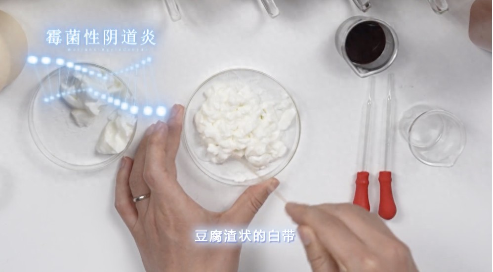 大家都听过,基本上就是豆腐渣样。因为它有时候跟前面讲的白带因为干燥然后缺水结块的样子有点像,所以我们要重点去描述霉菌性yin道炎的重点临床表现,它的症状就是瘙痒难耐四个字。