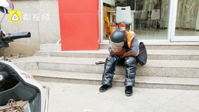 ⊙除夕工作17个小时,郑州跑腿小哥大年初一累得路边打盹