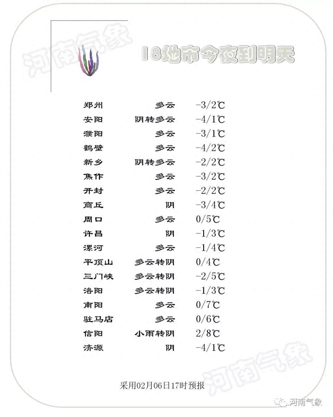 今天夜里到8日(初四),全省阴天, 淮河以北大部分地区有小雪,西部局部中到大雪;淮河以南有雨夹雪 。