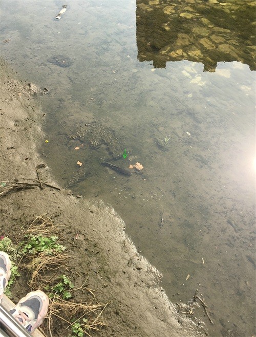 水沟里许多“大头黑鱼”藏身,清晰可见