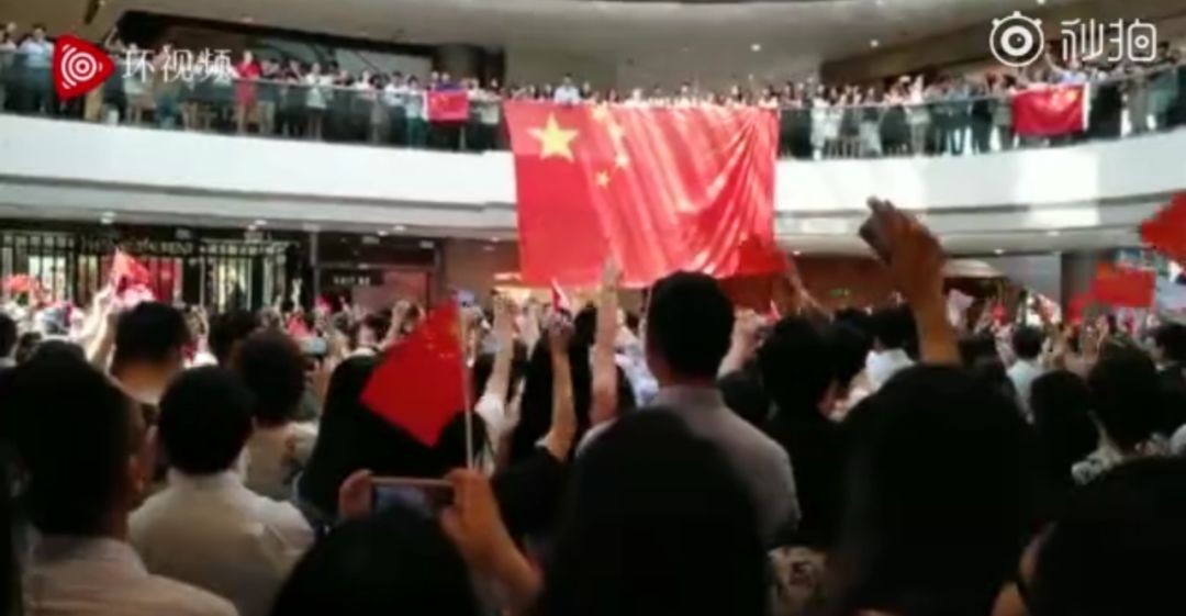 1、爱国爱港人士合唱国歌声援被打男子 12日,多名爱国爱港人士在国际金融中心发起合唱国歌和“歌唱祖国”等爱国歌曲的快闪活动,以此抗议激进示威者此前发起的所谓“大合唱”活动,并对11日晚因唱国歌被打的男子进行声援。(@环球网)