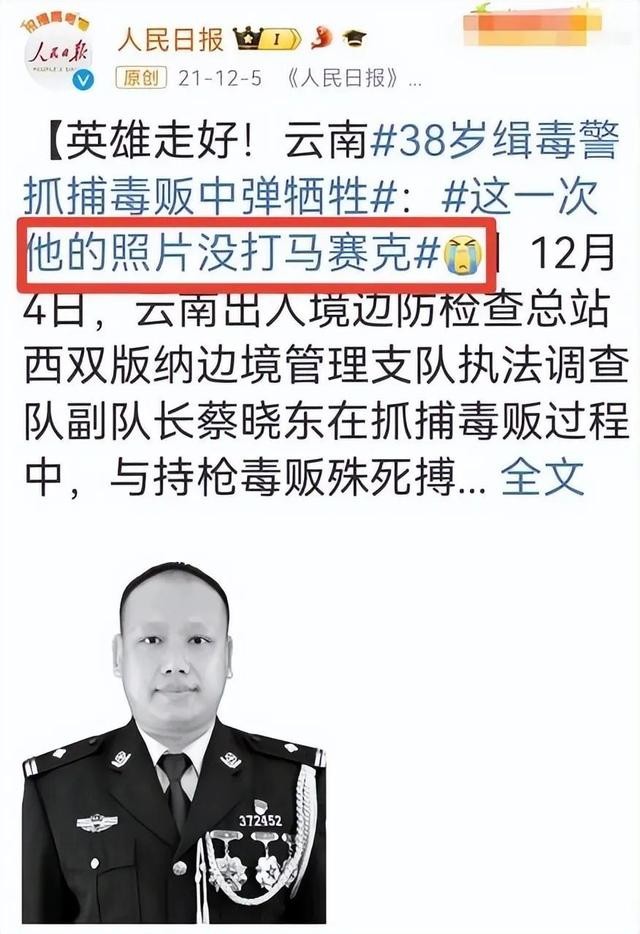 晚上一直流传着,缉毒警察在牺牲的时候照片都是会打上马赛克的,因为还要顾及到他们的家人会不会遭受到报复。
