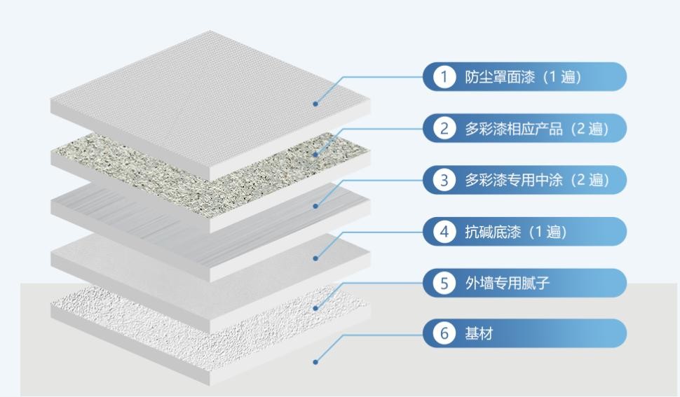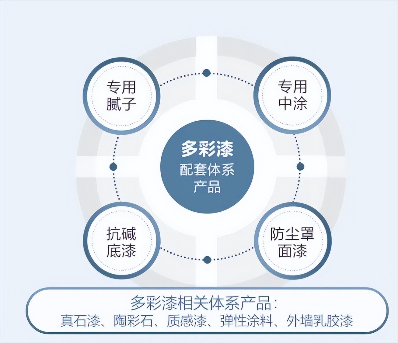 3、配套产品:外墙专用腻子、抗碱底漆、防尘罩面漆、专用中涂。