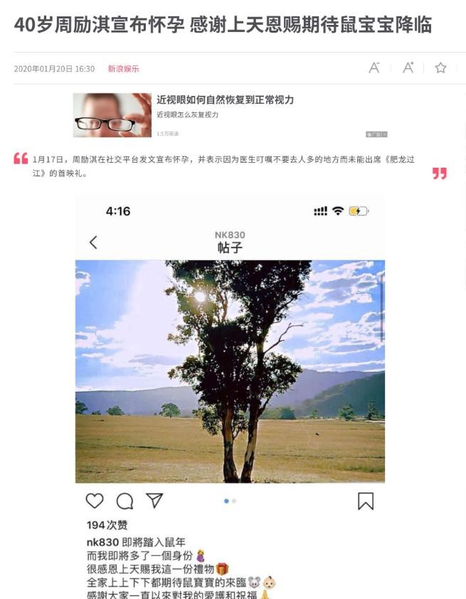 40岁周励淇宣布怀孕 感谢上天恩赐期待鼠宝宝降临 新浪娱乐