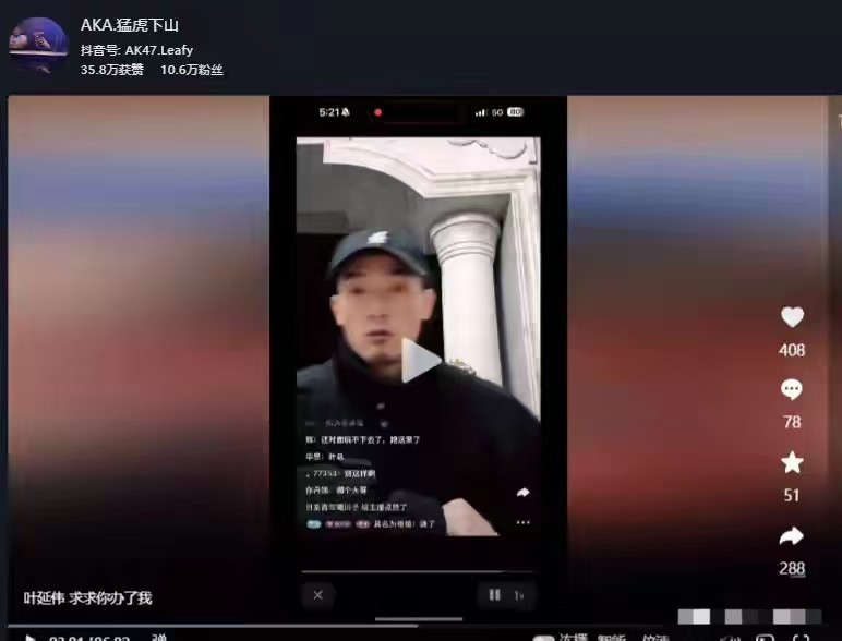 信息源:个人账号AKA猛虎下山发布的直播录屏
