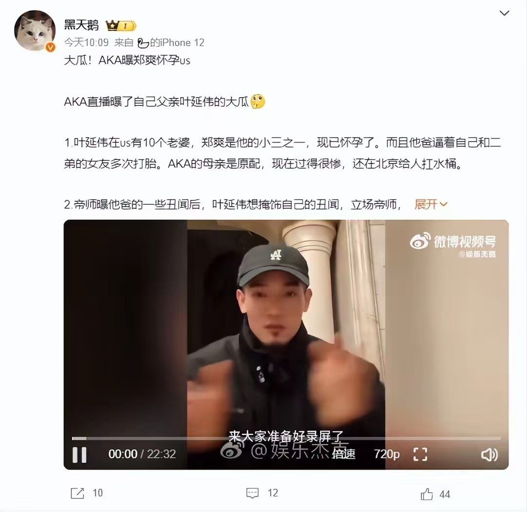 加上AKA作为叶延伟的儿子,对于自己父亲的所作所为,必然是清楚一些的,不然也不会冒着如此大的风险,在互联网上将这件事情曝光出来。面对网友的提问,郑爽是不是作为AKA的小妈时,AKA怒气冲天,说自己只有一个母亲。