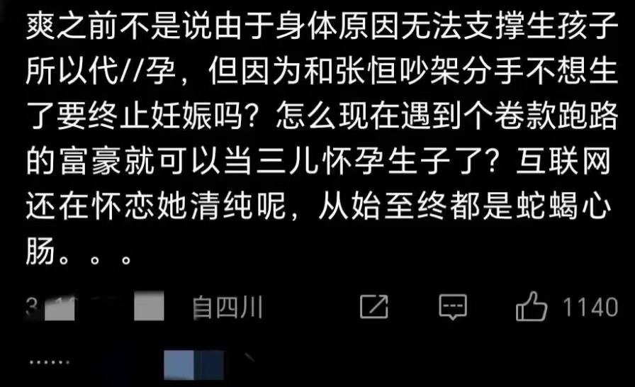 之前还有网友提到,郑爽为了自己的身体健康,找代孕生孩子,甚至因为不想生孩子的问题,和张恒大吵过,闹到分手的地步。这让许多人以为,郑爽是一位独立的女性,她想当一个清纯乖巧的女孩。