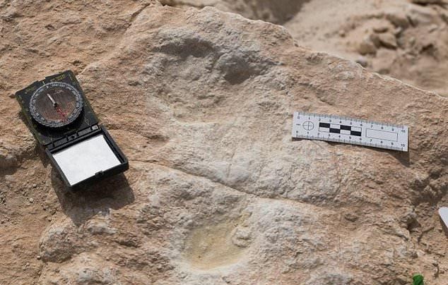 发表在《科学进步》杂志上的一篇论文显示,科学家在沙特阿拉伯半岛的一处古老湖泊遗址中发现了7个古人类的足印化石。