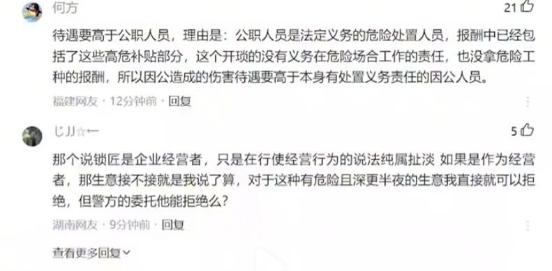 王艳丽认为,丈夫是被警方叫去开锁的,死亡后,也应该算工伤,跟去世的民警没有任何的区别,可两人死后的待遇却千差万别。