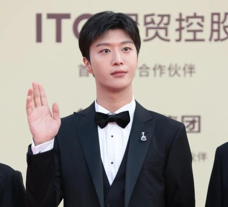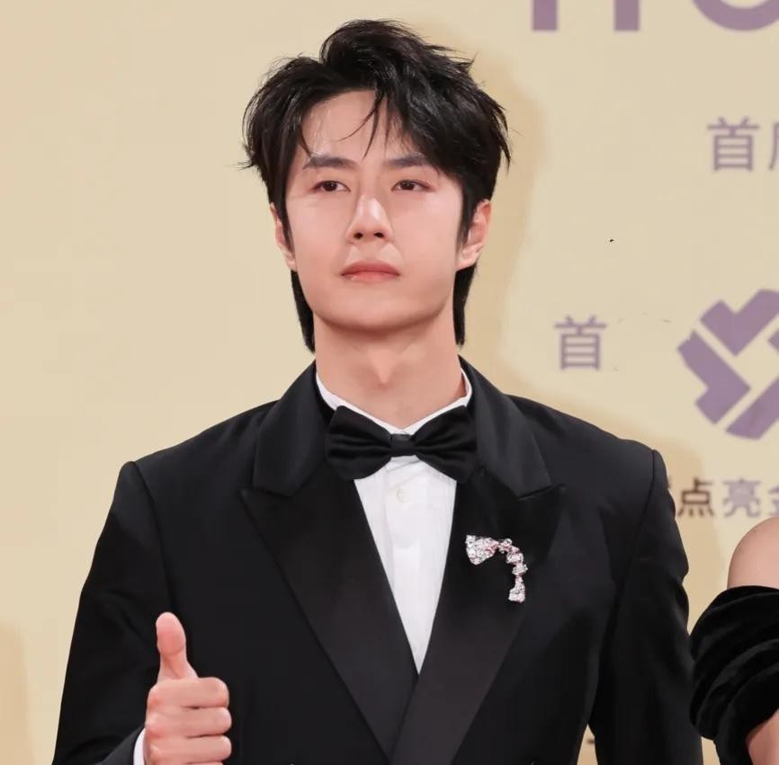 27岁王一博穿着黑色西装配黑色领结现身,他提名了这一次金鸡奖最佳男主角奖项,和彭昱畅、雷佳音等人竞争影帝。