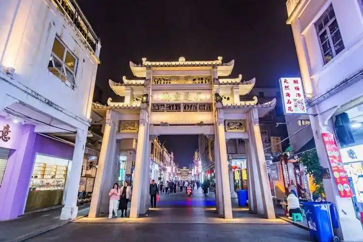 3、牌坊街。看骑楼建筑,品特色美食。位于潮州市湘桥区太平路。潮州牌坊街位于古城中心,是集非物质文化遗产、传统工艺、特色小吃为一体的文化古街,共有20多座中西合璧的骑楼。这里重重叠叠排列着23座石排房,每一座承载着潮州崇文重教的传统,如状元、四进士坊,皇命三赐等牌坊。