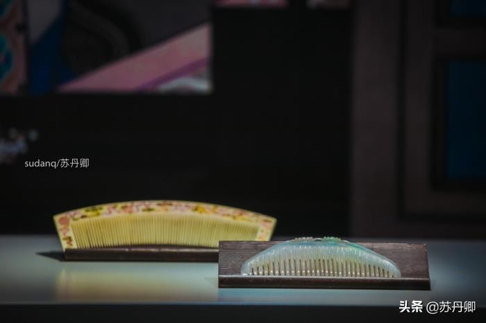 清宫后妃除了首饰精致,高贵,就连梳子也非一般材质。图中分别是【翡翠梳】【牙料描金彩绘花卉纹梳子】其中,这翡翠梳梳背脊镂雕花卉纹饰,梳齿均匀,做工精良,具有实用性和观赏性。