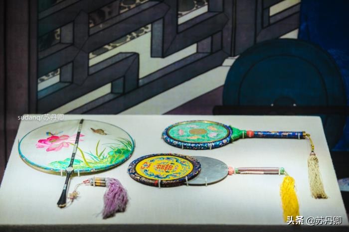 但在清宫廷的生活用品中,后妃于生活中的精致打扮又是何其丰富。当我们在看一些清宫剧的时候,除了被剧情所吸引,也惊叹于剧中出现的华丽服饰、精致首饰和其他生活用品。图为【黑漆屏白地彩绣花蝶纹团扇】【画珐琅把镜】【木柄铜镜】