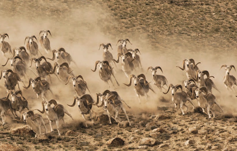 盘羊在帕米尔高原上行踪不定。它们头角峥嵘,行动机敏,出没于海拔3000~5000米的山坡和U形河谷。除了独自寻觅丰美的草场、躲避狼和雪豹的追击,它们也曾成群结队地偶遇风尘仆仆的发现者,比如19岁的马可·波罗。
