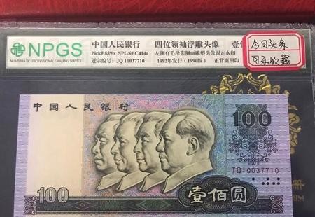 可乐收藏来回答第四套人民币90.100元的收藏价值。首先第四套人民币100元一共发行204亿的发行量、按照收藏届的老精稀的标准、90.100发行量太大、以至于目前全新绝品价格也就在180元左右、如果是流通品就是105到110左右,如果有缺、有裂口的流通品已经失去了收藏价值只值面值一百元、90.100元虽然目前收藏价值不高,但是它是中国经济起飞的见证、一个时代的回忆,希望头条的泉友们能够收藏快乐快乐收藏、少一点利益之心、耐得住寂寞、守得住繁华!