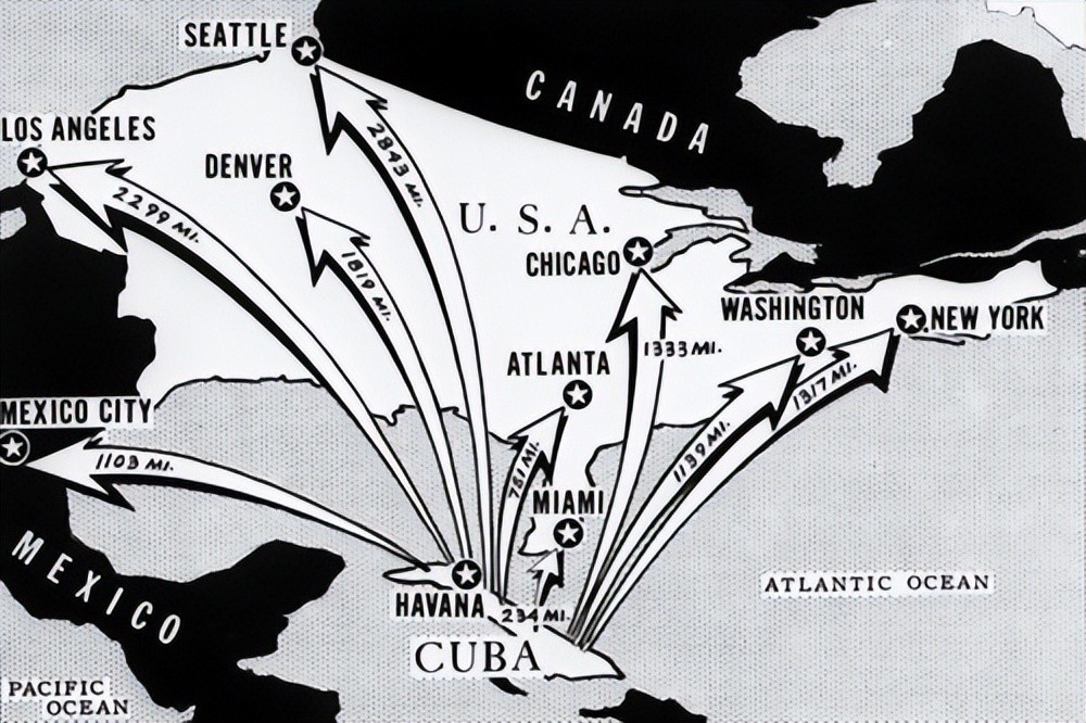 问题是我们作为见证历史的过来人是知道这点的,可当年身处其中的肯尼迪是不知道这点的。在当时美苏双方剑拔弩张的状态下美国方面怎么敢保证苏联这不是要打自己的节奏?事实上当美国高层得知苏联在古巴部署核弹后的第一反应就是苏联要对自己动手了。美国的纽约、华盛顿、费城、波士顿、迈阿密等主要城市都在古巴导弹的射程之内。一旦导弹从古巴基地发射意味着华盛顿方面只有十分钟左右的应对时间。