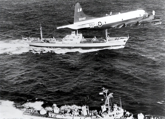双方在海上的对峙与在空中一样惊心动魄:苏联B-59号潜艇跟美国驱逐舰在靠近美军封锁线不远的海域狭路相逢后美舰毫不客气向苏联潜艇投掷了5颗深水炸弹,然而他们并不知道苏联艇长已被赋予发射核鱼雷进行反击的权限。这时苏联艇长只要一声令下就可以向美舰发射核鱼雷,而美舰在遭到核攻击之后势必也会动用核武器进行爆发。这次插枪走火险些引发美苏之间的一场核大战。