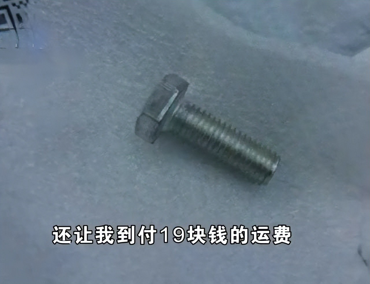 过了两天,商家终于发来了所谓的“配件”。刘女士接到快递,打开包裹,却看到了一颗普通的螺丝钉。更令人哭笑不得的是,商家要求刘女士付邮费。