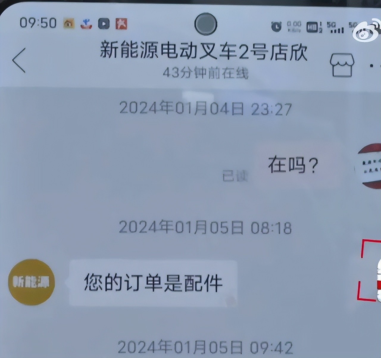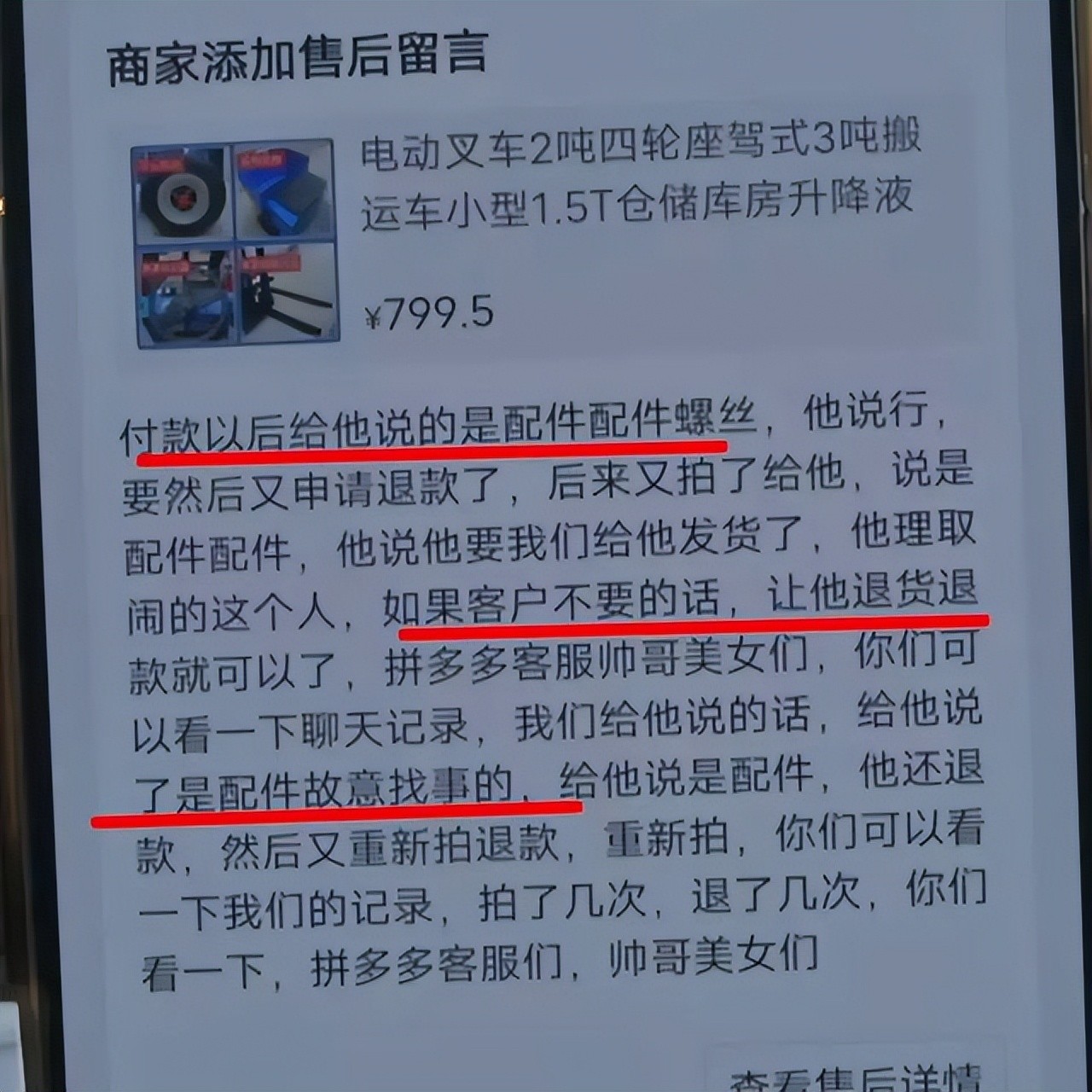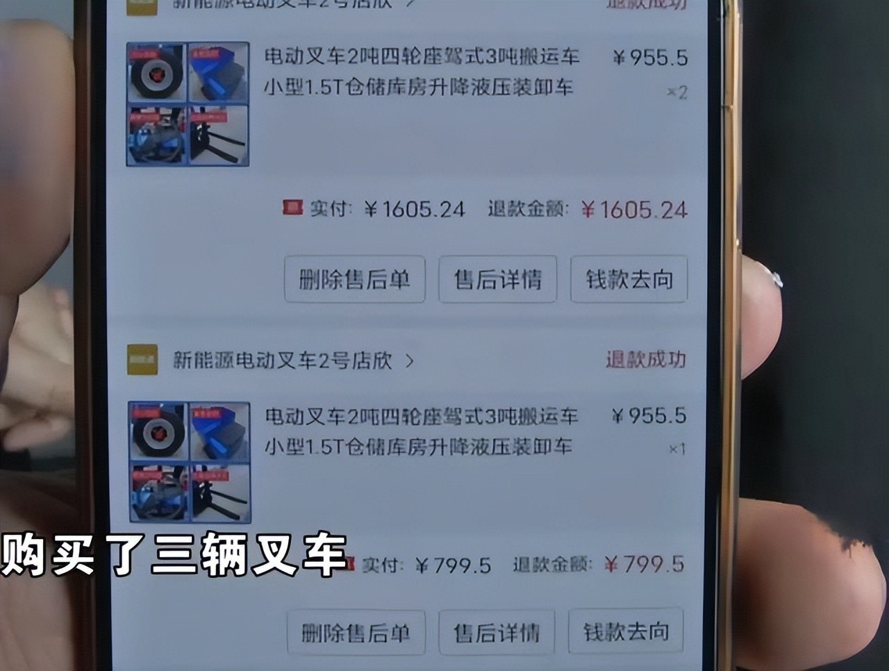女子2400元网购3辆叉车,店家到付19元只发一颗螺丝:她拍的是配件!