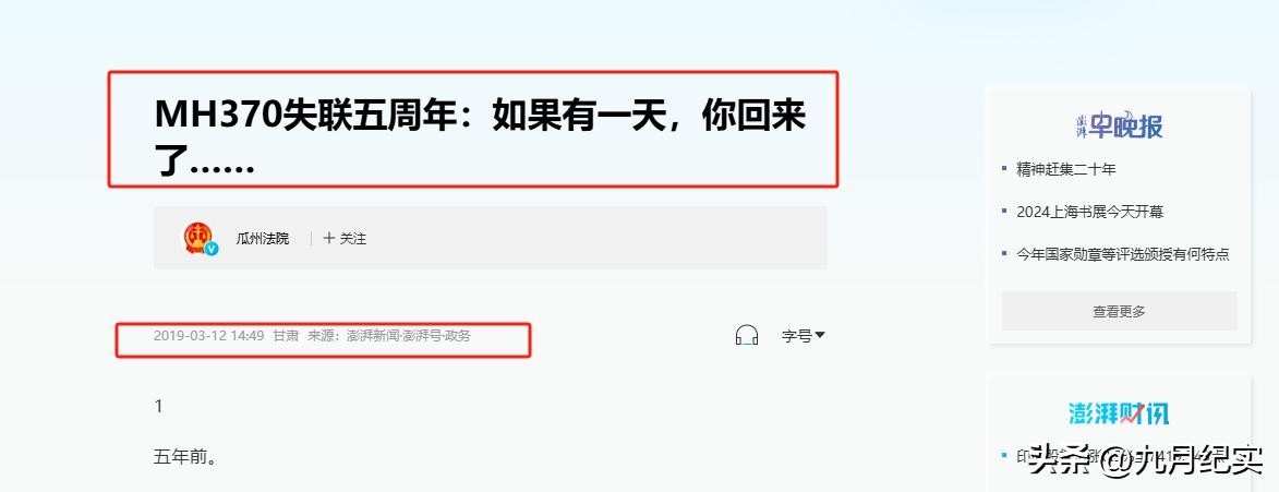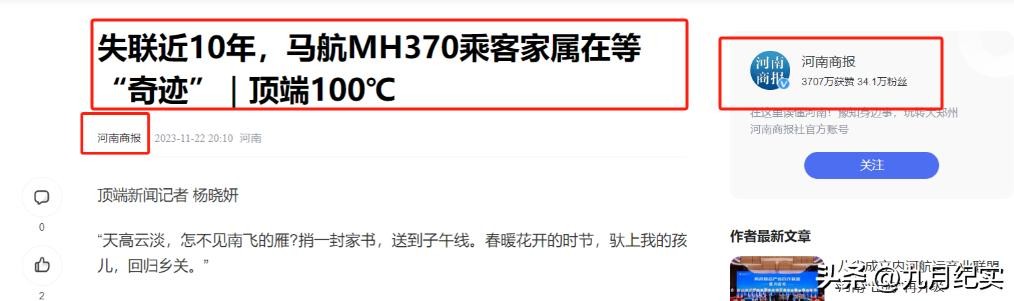 信息来源:2023.11.22,河南商报——失联近10年,马航MH370乘客家属在等“奇迹”|顶端100℃