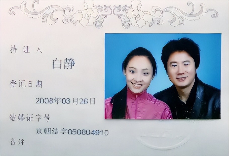 两人在2008年悄悄领了证,为了白静的事业,没有公开这件事。