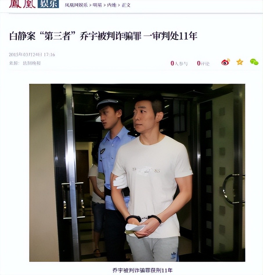2015年3月24日发布于凤凰娱乐——白静案“第三者”乔宇被判诈骗罪一审判处11年